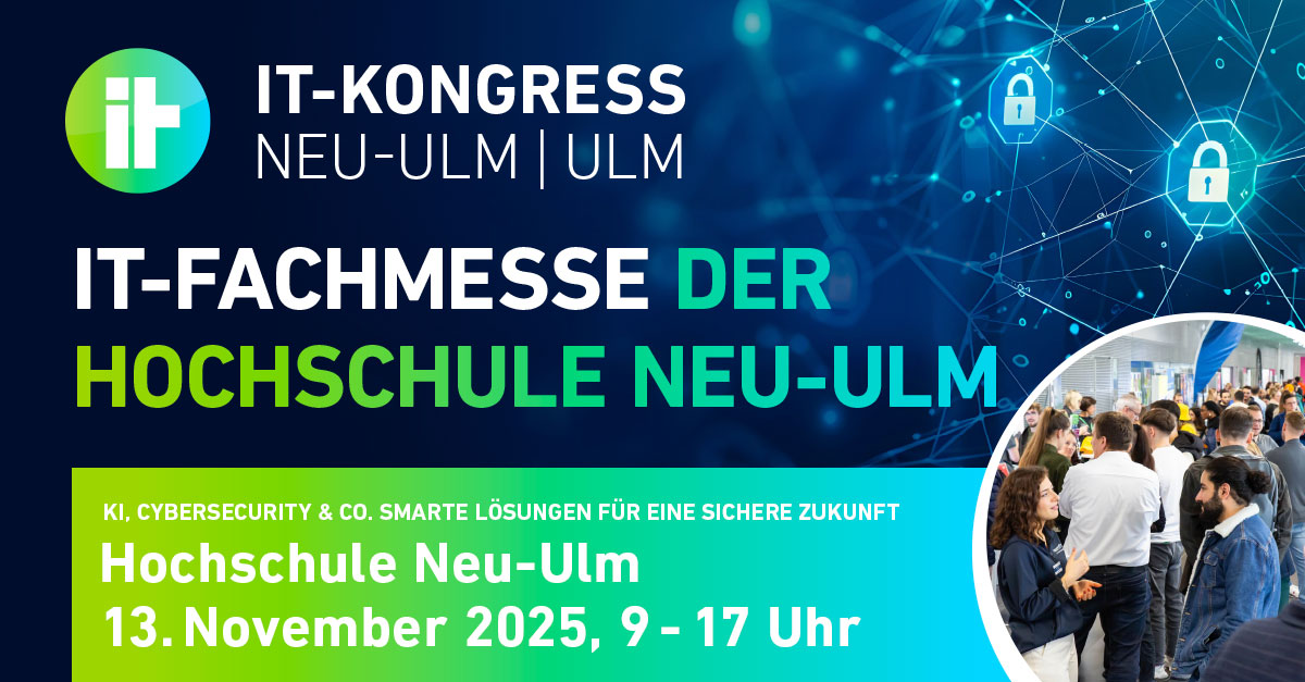 Am 13.11.2025 sind wir als Aussteller auf dem IT-Kongress an der Hochschule Neu-Ulm vertreten. Der IT-Kongress steht unter dem Motto „KI, Cybersecurity & Co. Smarte Lösungen für eine sichere Zukunft“.